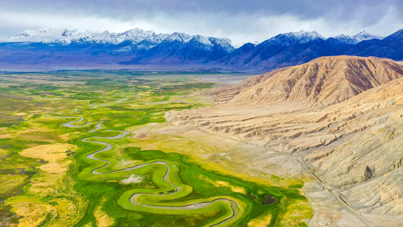 這是新疆塔什庫爾干塔吉克自治縣塔合曼濕地一景(6月30日無人機拍攝)。近年來,新疆多措并舉加大生態(tài)環(huán)境保護(hù)力度,建設(shè)天藍(lán)、地綠、水清的美麗家園。